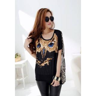 » Apparel » Women's Clothing » Tees & T-shirts » Short Sleeves Night Owl Print Chiffon Scoop Neck Fashionable Style Women's T-ShirtWe Also Recommend